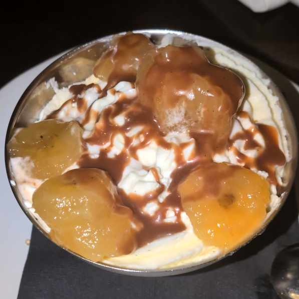 Banana Fudge Sundae: This was a wild disappointment. The two things I miss most from France are the bread and the pastry. The flawless appetizer made me expect something great for dessert, but that hope was quickly crushed. The homemade ice cream was a complete letdown; any sweetness was overpowered by the taste of heavy cream. The texture was grainy, full of frozen heavy cream chunks, as if the ice cream base had split. The bananas were flambéed, which was fine, but the chocolate “fudge” wasn’t fudge at all. It was a thin, watery chocolate sauce that had no business being on the menu. A huge letdown; I expected way more.
